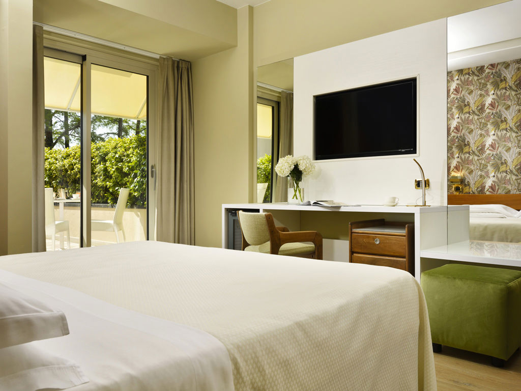高级湖景房是一个令人愉快和舒适的地方,最多可容纳三个人住宿。它们提供美丽的湖景以及宜人的局部湖景。这些房间大约20平方米,有一张双人床或带加床的双床,一张桌子和一个壁橱。家具和材料都是传统和直接的,家具和纺织品都是暖色调的每个房间都包括免费无线网络、卫星电视、空调、保险箱、迷你酒吧和电话。此外,每个房间都包括一个马桶、浴袍和拖鞋等物品晚上的翻身服务和水疗服务都包含在房费中。